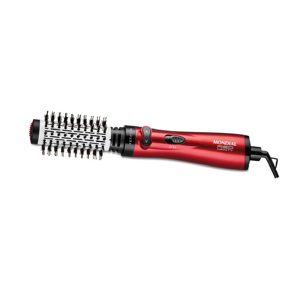 Escova Rotativa Red Infinity Keratin da Mondial possui 1000W de potência e revestimento cerâmico com Queratina que ajuda a proteger os fios que potencializa o brilho e reduz o frizz. Conta com Duplo Sentindo de Rotação que gira a escova 360° nos 2 sentidos permitindo uma modelagem perfeita, ótima para finalizar pontas e franjas para dentro ou para fora; 2 Ajustes de Temperatura e Ar Frio que proporcionam o melhor ajuste de acordo com o tipo de cabelo e resultado desejado.