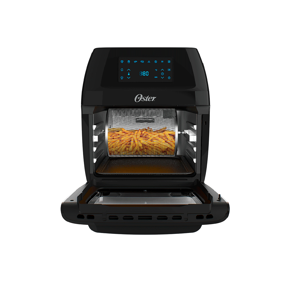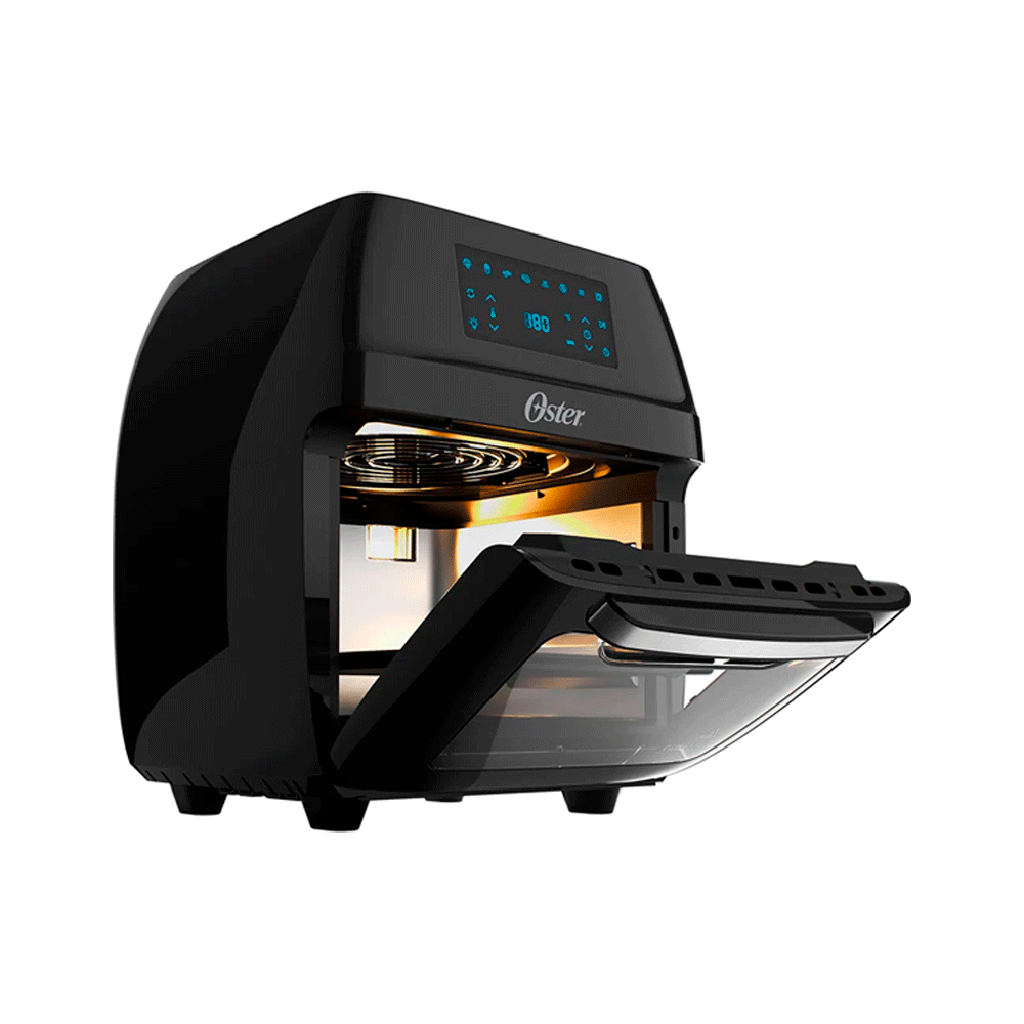 A nova Fritadeira Forno 3 em 1 Oster® Fritadeira, forno e desidratador chega para inovar seus momentos na cozinha. Multifunções e com capacidade ampliada, preparos rápidos e saudáveis. Com 9 FUNÇÕES 4 funções pré-programadas: batata frita, aves, legumes e carnes. 5 funções para personalizar: fritar sem óleo, desidratar, reaquecer, assar e assar com rotisserie. 6 acessórios: cesto rotativo, espeto rotisserie, bandeja coletora, duas grades para fluxo de ar e gancho.