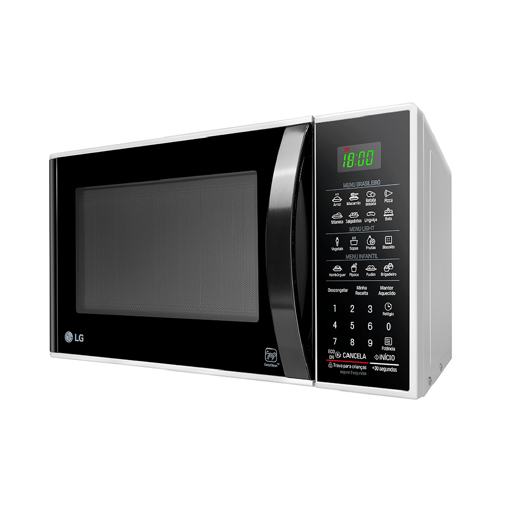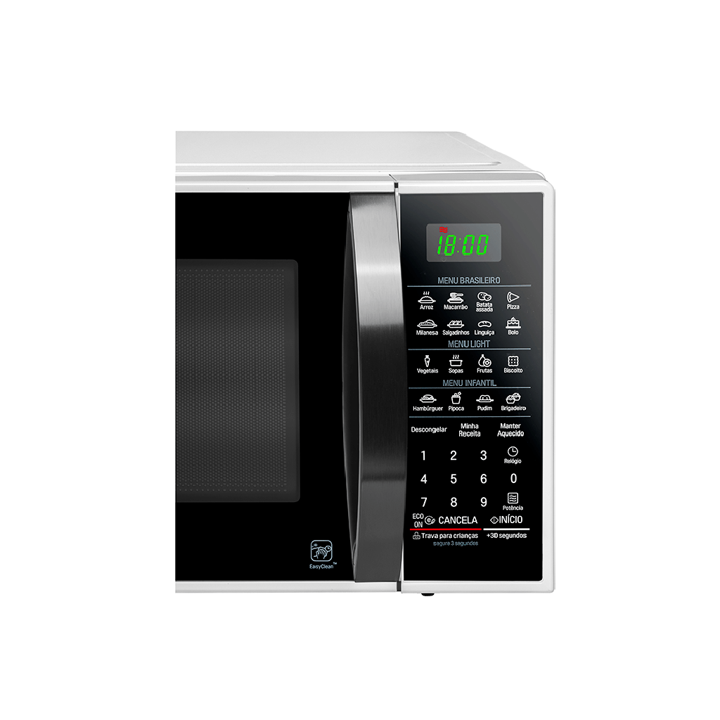 O EasyClean? é um revestimento especial da cavidade que evita a penetração da gordura e respingos de comida, proporcionando uma limpeza mais rápida e com menos esforço. A função ECO ON permite economizar até 52% de energia no modo repouso (stand by) desligando a iluminação do visor e da cavidade ao pressionar o botão ECO ON ou após 5 minutos com o desligamento automático. Além disso, possui classificação “A” em eficiência energética, garantindo um consumo ainda menor.